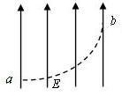 一带电粒子在匀强电场E中的运动轨迹如右图虚线所示,电场方向竖直向下.若此带电粒子仅在电场力的作用下由a运动到b,下列说法正确的是![]()