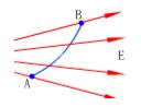 如图所示,虚线是带电粒子在电场中运动的径迹,不考虑重力和空气阻力,粒子在由电场中的A点运动到B点的过程中,以下判断正确的是( )![]()
