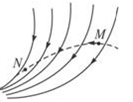 图中的实线表示电场线,虚线表示只受电场力作用的带电粒子的运动轨迹,粒子先经过M点,再经过N点,可以判定…:![]()