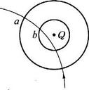 在点电荷Q的电场中,一个电子通过时的轨迹如图实线所示,a、b为两个等势面,则下列判断中正确的是![]()