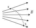 如图所示,实线是电场中一簇方向已知的电场线,虚线是一个带电粒子通过该电场区域时的运动轨迹,a、b是运动轨迹上的两点,若带电粒子只受电场力作用,根据此图作出的判断是( )![]()