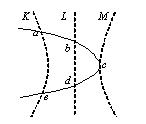 如图中K、L、M为静电场中的三个相距很近的等势面(K、M之间无电荷)。一带电粒子射入此静电场中后,依a→b→c→d→e轨迹运动。已知电势UK<UL<UM,下列说法中正确的是 ( )![]()