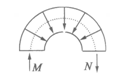 两个共轴的半圆柱形电极间的缝隙中,存在一沿半径方向的电场,如图所示.带正电的粒子流由电场区域的一端M射人电场,沿图中所示的半圆形轨道通过电场并从另一端N射出,由此可知 ( )![]()