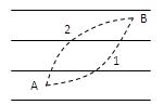 一带电粒子沿图中AB曲线穿过匀强电场中的一组等势面,等势面的电势关系满足φa>φb>φc>φd.若不计粒子所受重力,则:![]()