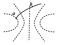 如图所示,虚线是两个等量点电荷所产生的静电场中的一簇等势线,一不计重力的带电粒子从a点射入电场后恰能沿图中的实线运动,b点是其运动轨迹上的另一点,则下述判断正确的是![]()