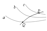 如图所示,虚线a、b、c是电场中的三个等势面,相邻等势面间的电势差相同,实线为一个带正电的质点仅在电场力作用下,通过该区域的运动轨迹,P、Q是轨迹上的两点。下列说法中正确的是( )![]()