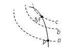 如图所示,虚线a、b、c代表电场中的三个等势面,实线为一带正电的粒子仅在电场力作用下通过该区域时的运动轨迹,P、M为这轨迹上的两个点,由此可知 ( )![]()