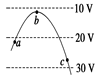 如图所示,三条平行等间距的虚线表示电场中的三个等势面,电势值分别为10 V、20 V、30 V,实线是一带电粒子(不计重力)在该区域内的运动轨迹,a、b、c是轨迹上的三个点,下列说法正确的是( )![]()