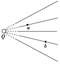 如图所示,实线是一簇未标明方向的由点电荷Q产生的电场线,若带电粒子q(|Q|?|q|),由a运动到b,电场力做正功。已知在a、b两点粒子所受电场力分别为Fa、Fb,则下列判断正确的是( )![]()