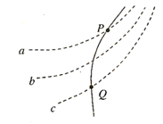 ,实线为一带负电的粒子仅在电场力作用下通过该区域时的运动轨迹,P、Q是这条轨迹上的两点,不计粒子重力。则![]()