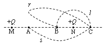 表示匀强电场中的4个等势面。两个带电粒子M.N(重力忽略不计)以平行于等势面的初速度射入电场,运动轨迹分别如图中MPN和NQM所示。已知M是带正电的带电粒子,则: ( )![]()