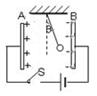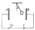 平行板电容器的两板A、B接于电池两极,一带正电小球用绝缘细线悬挂在电容器两板之间,细线与竖直方向夹角为θ,如图,那么:( )![]()