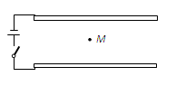 如图所示,两块平行金属板正对着水平放置,两板分别与电源正、负极相连。当开关闭合时,一带电液滴恰好静止在两板间的M点。则![]()