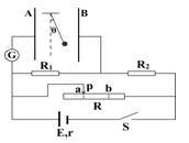 | C.当滑动头从a向b滑动时,电流表中有电流,方向从上向下 |