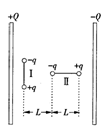 如图所示,相距为d的两平行金属板的电容为C,带电量为Q.有一长为L的绝缘轻杆,两端各固定电荷量分别为—q和+q的小球,不计两球的重力和两球间的库仑力.现先将杆从平行于极板的位置I缓慢移动到垂直于极板的位置Ⅱ,再从位置Ⅱ缓慢移动到无穷远处.则( )![]()