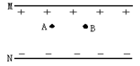 两块平行金属板M、N水平放置.带电情况如图所示,其内部空间有两个悬浮着的小带电液滴A和B,采用以下哪些办法可使液滴向上做加速运动 ( )![]()