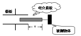 如图所示,电容器极板间有一可移动的电介质板,介质与被测物体相连,接入电路后,通过极板上物理量的变化可确定被测物体的位置。下列说法中正确的是( )![]()