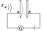 传感器是把非电学物理量(如位移、压力、流量、声强等)转换成电学量的一种元件.如图所示为一种电容式传感器,电路可将声音信号转化为电信号.电路中a、b构成一个电容器,b是固定不动的金属板,a是能在声波驱动下沿水平方向振动的镀有金属层的振动膜.若声源S发出频率恒定的声波使a振动,则a在振动过程中( )![]()