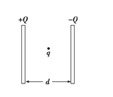 如图所示,平行板电容器的电容为C,带电荷量为Q,两极板间距离为d,今在距两极板的中点