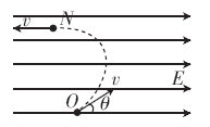 如图所示,一个带电荷量为-q的油滴从O点以速度v射入匀强电场中,v的方向与电场方向成θ角.已知油滴的质量为m,测得油滴到达运动轨迹的最高点时,它的速度大小也为v.下列说法正确的是 ( )![]()