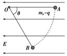 如图所示,在场强大小为E的匀强电场中,一根不可伸长的绝缘细线一端拴一个质量为m、电荷量为q的带负电小球,另一端固定在O点.把小球拉到使细线水平的位置A,然后将小球由静止释放,小球沿弧线运动到细线与水平成θ=60°的位置B时速度为零.以下说法正确的是( )![]()