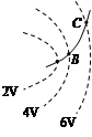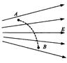 一带电粒子从电场中的A点运动到B点,径迹如图中虚线所示,不计粒子所受重力,则 ( ) 。![]()
