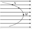 如图所示,一带负电粒子以某速度进入水平向右的匀强电场中,在电场力作用下形成图中所示的运动轨迹.M和N是轨迹上的两点,其中M点是轨迹的最右点.不计重力,下列表述正确的是( )![]()