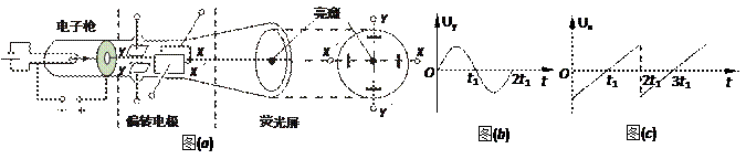 示波管是示波器的核心部件,它由电子枪、偏转电极和荧光屏组成,如图所示.如果在荧光屏上P点出现亮斑,那么示波管中的![]()