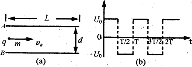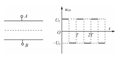 一对平行金属板长为L,两板间距为d,质量为m,电荷量为e的电子从平行板右侧以速度v0沿两板的中线不断进入平行板之间,两板间所加交变电压uAB如图所示,交变电压的周期T=
