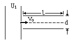 (13分)如图所示的装置,U1是加速电压,紧靠其右侧的是两块彼此平行的水平金属板,板长为L,两板间距离为d。一个质量为m,带电量为-q的质点,经加速电场加速后沿两金属板中心线以速度v0水平射入两板中。若在两水平金属板间加一电压U2,当上板为正时,带电质点恰能沿两板中心线射出;当下板为正时,带电质点则射到下板上距板的左端L/4处.为使带电质点经U1加速后,沿中心线射入两金属板,并能够从两金属板之间射出,求两水平金属板间所加电压应满足什么条件,确定电压值的范围。