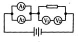 四个相同的小量程电流表(表头)分别改装成两个电流表A1.A2和两个电压表V1.V2.已知电流表A1的量程大于A2的量程,电压表V1的量程大V2的量程,改装好后把它们按图示接入电路,则( ) ![]()