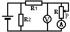 在图的闭合电路中,当滑片P向下移动时,两电表读数的变化是 ![]()