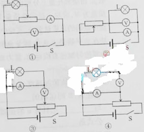 在测量电珠伏安特性实验中,同学们连接的电路中有两个错误电路,如图所示。电源内阻不计,导线连接良好,若将滑动变阻器的触头置于左端,闭合S,在向右端滑动触头过程中,会分别出现如下四种现象:![]()