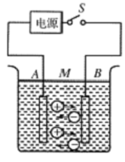 如图所示,在NaCl溶液中,正、负电荷定向移动,其中Na+水平向右移动。若测得4s内分别有1.0×1018个Na+和1.0×1018个Cl-通过溶液内部的横截面M,那么溶液中的电流方向和大小为( )![]()