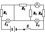如图所示电路中,两灯均不亮,已知电路中只有一处故障,且除两个灯泡外其余部分均完好,在不拆开电路的情况下,某同学用一根导线去查找电路的故障,他将导线先并接在灯L1两端,发现L2亮,L1不亮,然后将导线并接在灯L2两端,发现两灯均不亮,由此可判断![]()