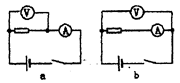如图a、b所示的两个电路中,电阻R、电流表、电压表和电池都是相同的,电池的内阻相对于电阻R的大小可以忽略。闭合开关后,图a、b电路中电压表和电流表的示数Va、Vb和Ia、Ib的大小不相同,它们的关系正确的是:( )![]()