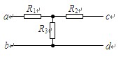一个T型电路如图所示,电路中的电阻,R1=10Ω,R2=120Ω,R3=40Ω .另有一测试电源,电动势为100V,内阻忽略不计。则![]()