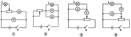 在测量电珠伏安特性实验中,同学们连接的电路中有四个错误电路,如图所示。电源内阻不计,导线连接良好,若将滑动的变阻器的触头置于左端,闭合S,在向右端滑动触头过程中,会分别出现如下四种现象:![]()