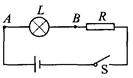 如图所示的电路中,闭合开关S以后,灯L不亮。用电压表测得A、B间电压为零,其原因可能是( )![]()
