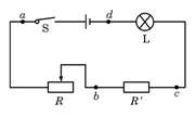 用电压表检查图示电路中的故障,测得Uad=5.0 V,Ucd=0 V,Ubc=0 V,Uab=5.0 V,则此故障可能是![]()