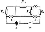 如图所示的电路中,闭合电键,灯L1、L2正常发光,由于电路出现故障,突然发现灯L1变亮,灯L2变暗,电流表的读数变小,根据分析,发生的故障可能是![]()