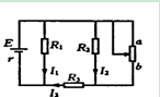 如图所示电路,已知R1=3 kΩ,R2=2 kΩ,R3=1 kΩ,I=10 mA,I1=6 mA,则a、b两点电势高低和通过R2中电流正确的是( )![]()
