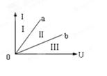 如图所示是阻值不同的两个电阻的电流随电压变化的图线,那么a、b所示的电阻及这两个电阻串联或并联后图像所在的区域正确的是( )![]()