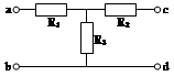 一个T型电路如图所示,电路中的电阻R1=10W,R2=120W,R3=40W。另有一测试电源,电动势为100V,内阻忽略不计,则![]()