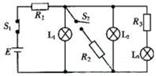 如图所示,电动势为E、内阻不计的电源与三个灯泡和三个电阻相接.只合上开关S1,三个灯泡都能正常工作.如果再合上S2,则下列表述正确的是![]()