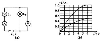 与理想电压表和理想电流表连接成如图(a)所示的实验电路,其中电源电动势E=9V,图(b)是通过两个灯泡的电流随两端电压变化的曲线,当其中一个灯泡正常发光时( )![]()