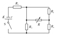 如图所示的电路中,电源电动势为E,内阻为r,R为可变电阻,其余电阻为定值电阻。则开关S闭合后,当R变小时,以下说法正确的是( )![]()