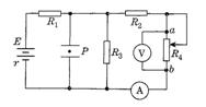 如图所示,平行金属板中带电质点P原处于静止状态,不考虑电流表和电压表对电路的影响,当滑动变阻器R4的滑片向b端移动时,则( )![]()