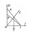 如图所示,直线A为电源a的路端电压与电流的关系图像,直线B为电源b的路端电压与电流的关系图像,直线C为一个电阻R的两端电压与电流的关系图像.将这个电阻R分别接到a,b两电源上,那么下列说法不正确的是:![]()