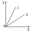 如右图所示为两电阻R1和R2的伏安特性曲线。若在两电阻两端加相同的电压,关于它们的电阻值及发热功率比较正确的是 ( )![]()
